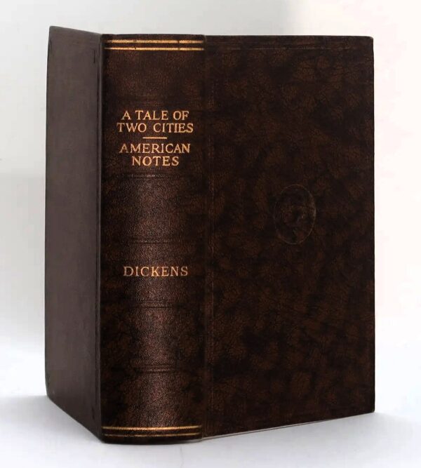 Vintage edition with embossed portrait of Dickens on front cover. Gilt lettering on spine with brown grained cloth.