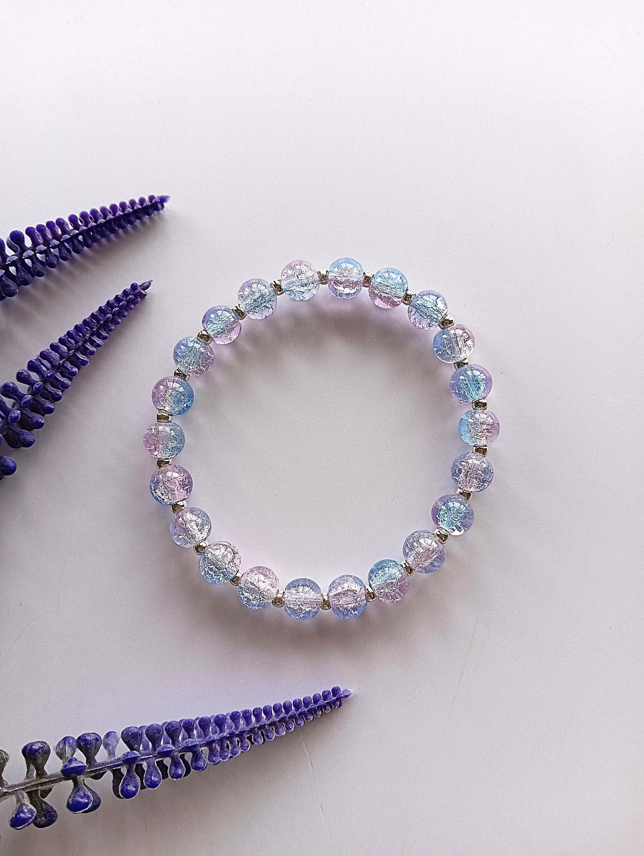 Exquisitely Handmade pink blue transparent gradient glass beads stretchable bracelet