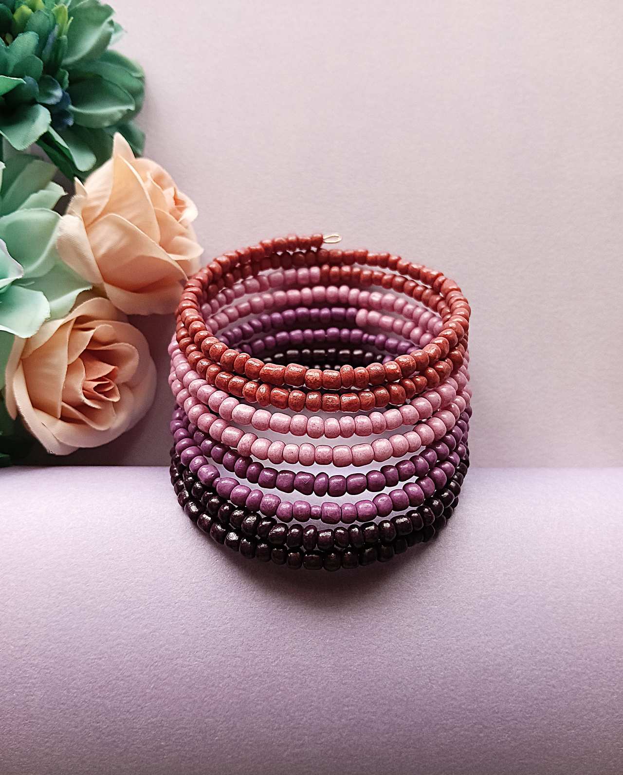 Exquisitely Handmade blush tones beaded memory wire wrap bracelet