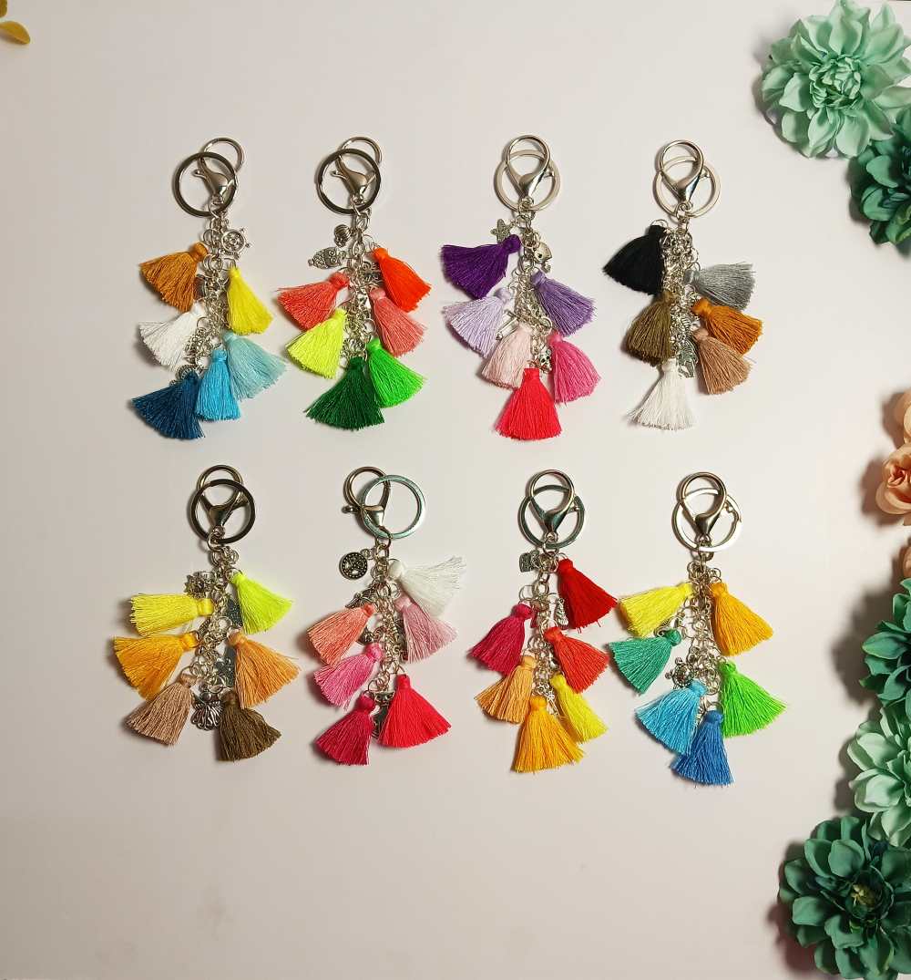 Adorned with soft, flowing, colorful cotton tassels and whimsical charms, each piece is designed to bring a free-spirited touch to your everyday essentials. Perfect for keys, handbags, or gifting, an instant boho-chic upgrade.
