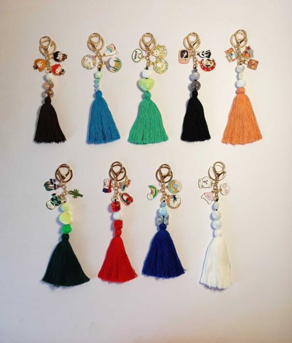 Featuring a soft, flowing cotton tassel paired with carefully selected colorful beads and adorable charms, this accessory blends style and personality effortlessly. Perfect for keys, handbags, or gifting, it’s a small detail that makes a big statement.