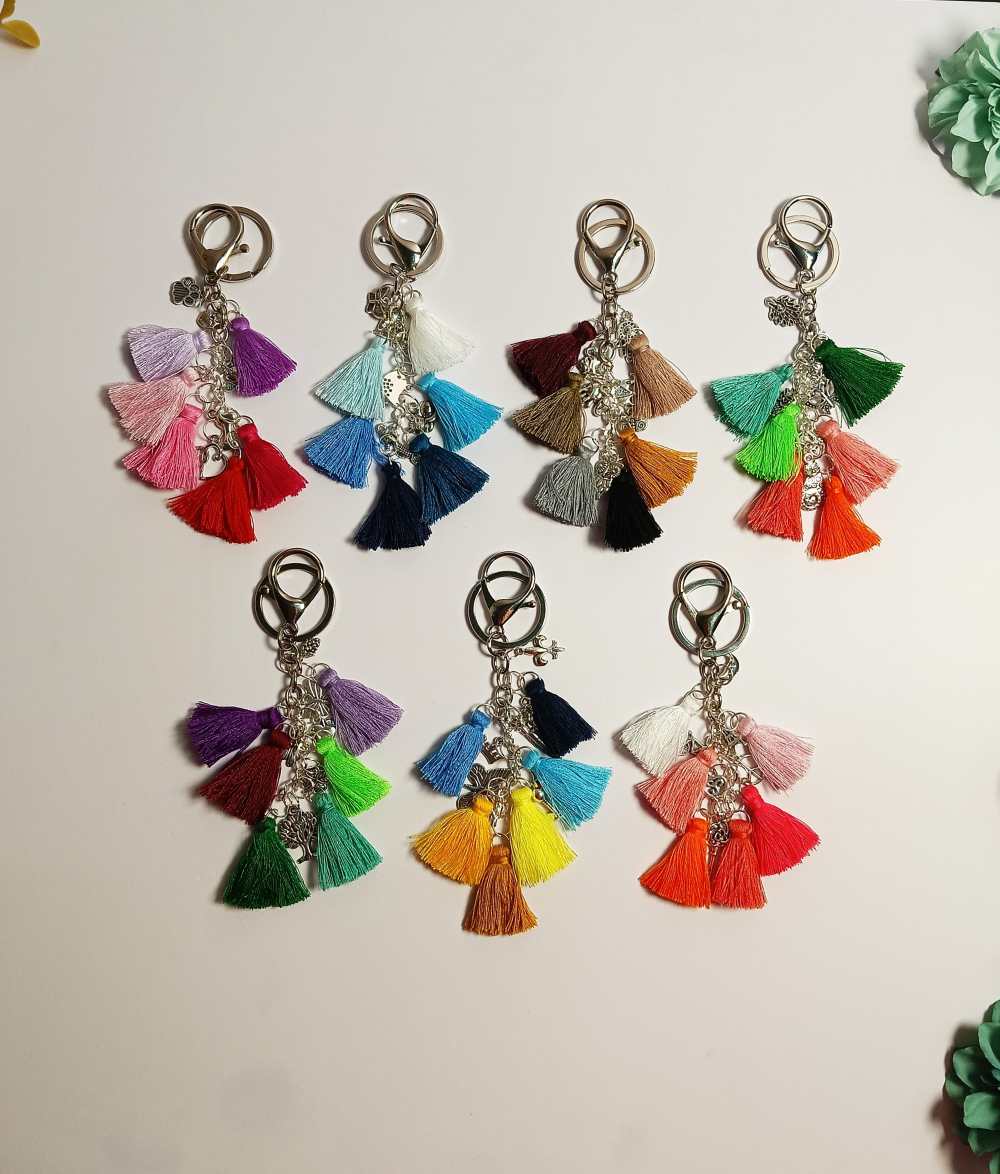 Adorned with soft, flowing, colorful cotton tassels and whimsical charms, each piece is designed to bring a free-spirited touch to your everyday essentials. Perfect for keys, handbags, or gifting, an instant boho-chic upgrade.