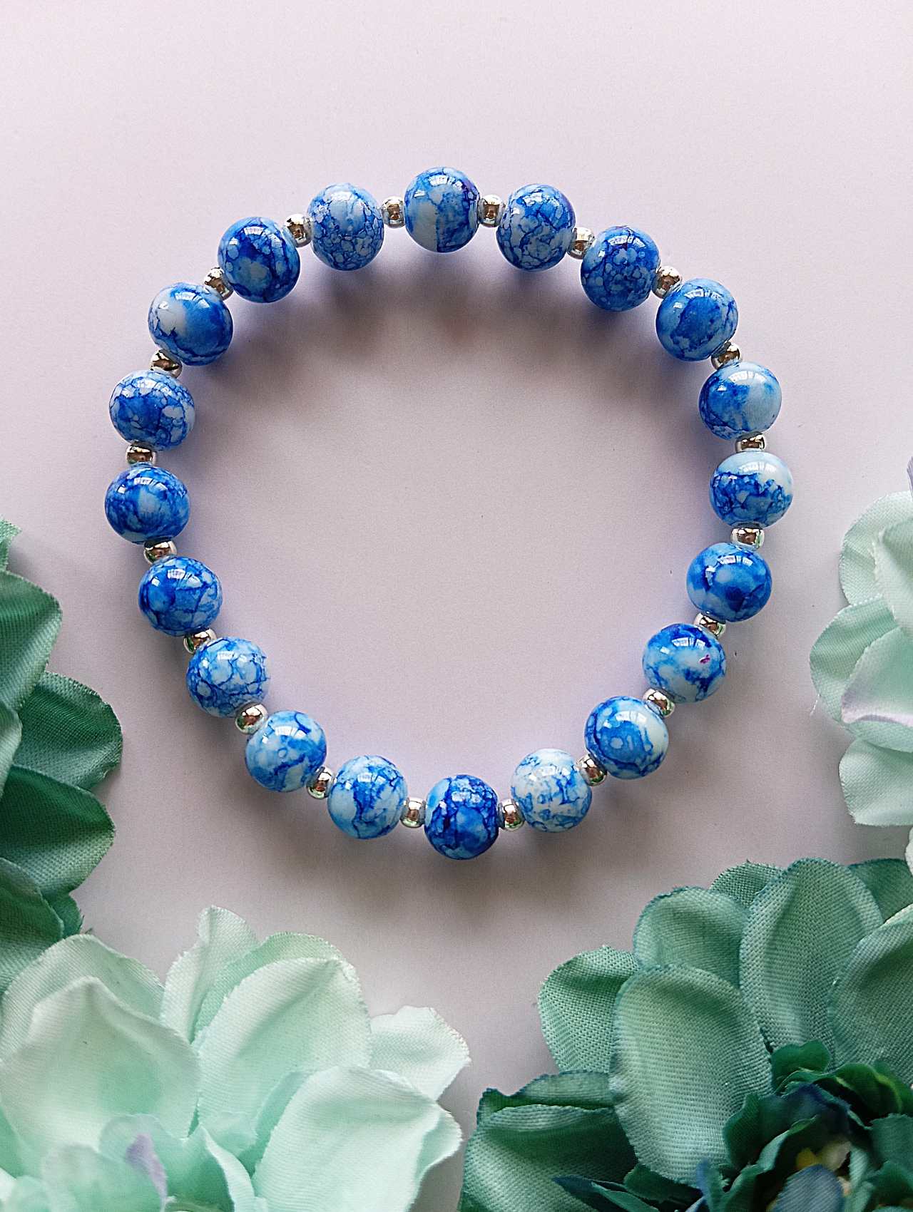 Exquisitely Handmade cobalt blue marble jade glass beads stretchable bracelet