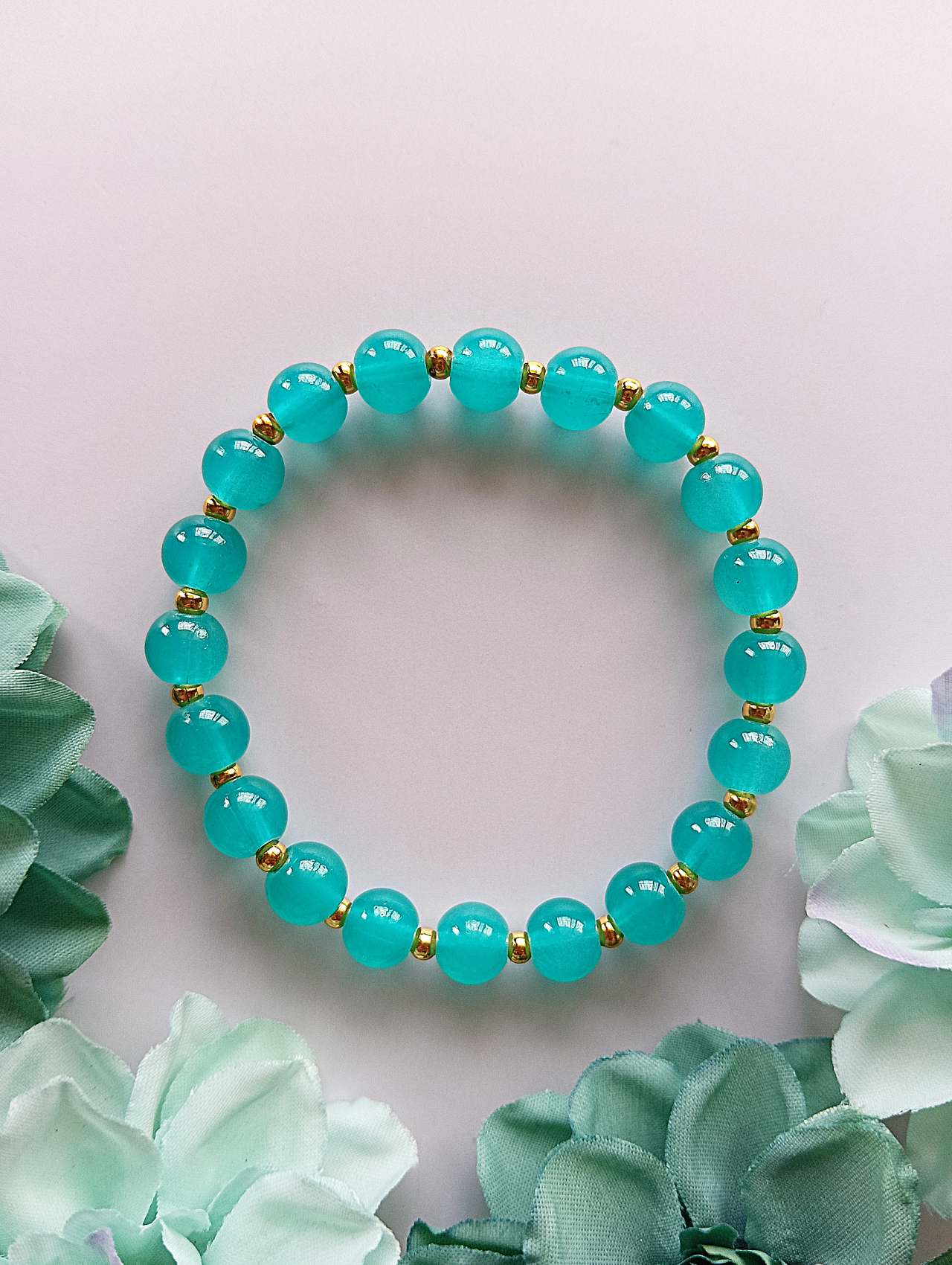 Exquisitely Handmade cyan jade glass beads stretchable bracelet