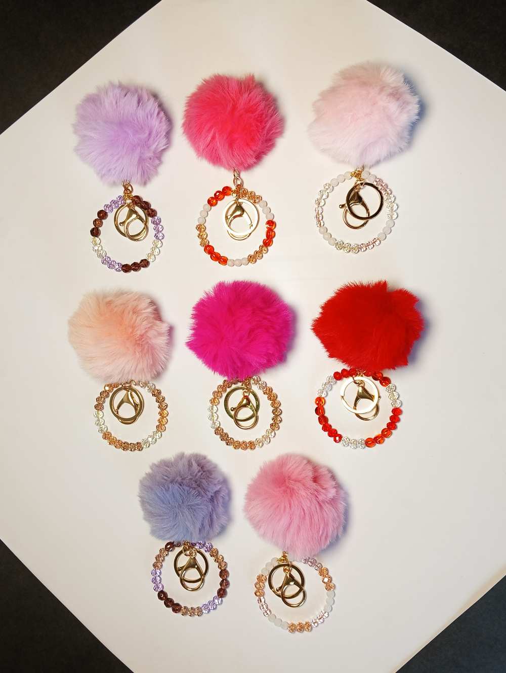 Fur Keychain-Pom Pom Beaded Bag Charms: Pink Family