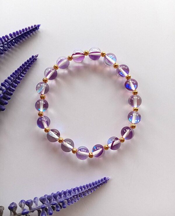 Exquisitely Handmade lavender rainbow crystal glass aura beads stretchable bracelet
