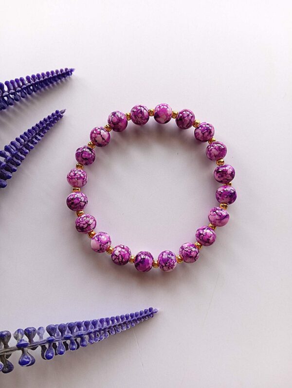 Exquisitely Handmade magenta marble jade glass beads stretchable bracelet
