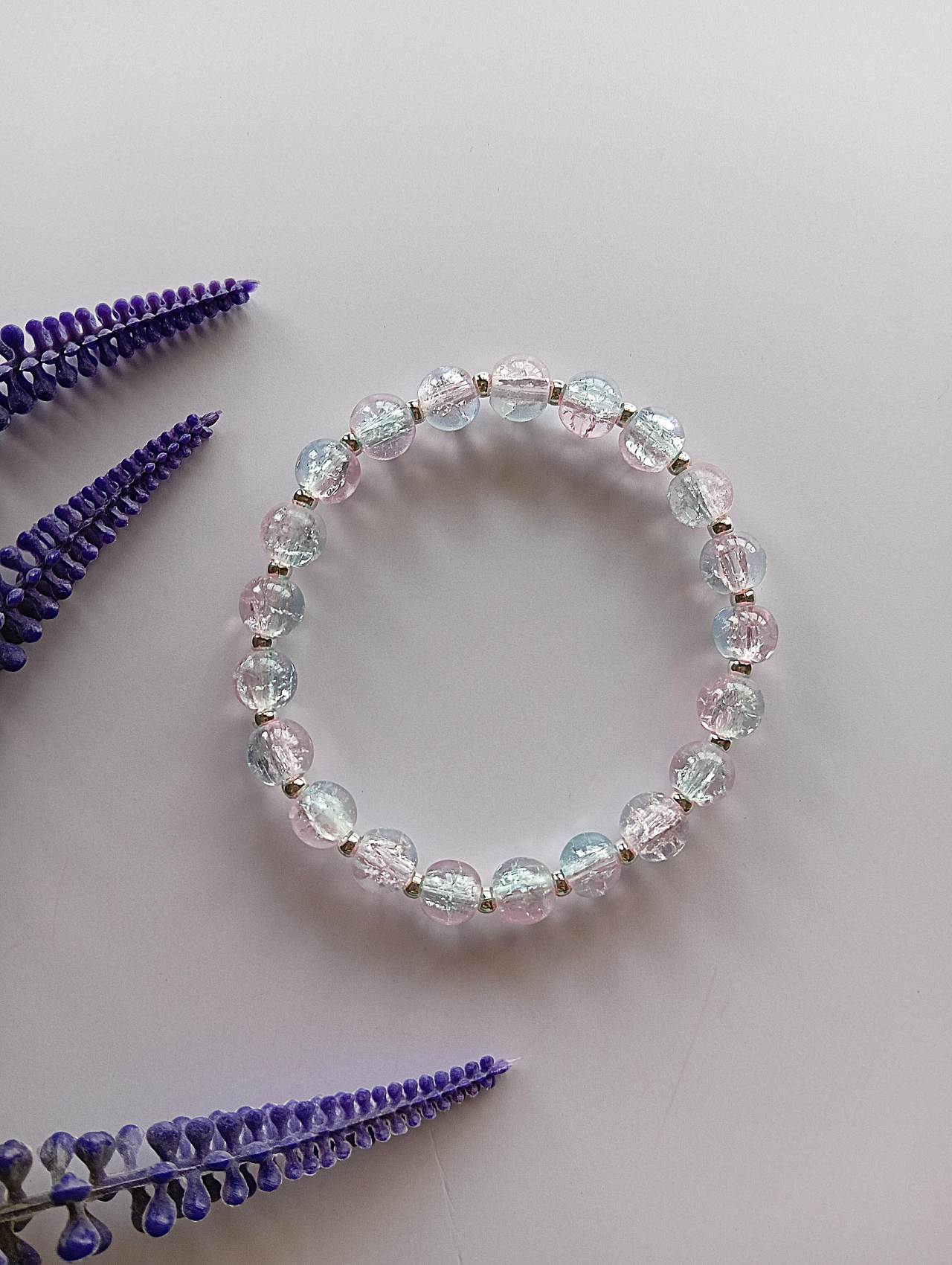 Exquisitely Handmade pink gray transparent gradient glass beads stretchable bracelet