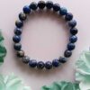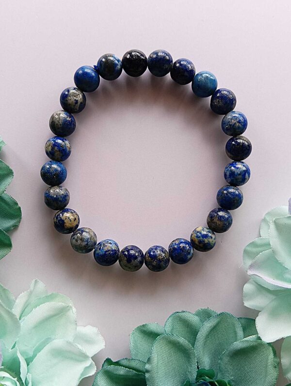 Beautiful blue and golden stretchable bracelet made from 100% original Lapis Lazuli beads.