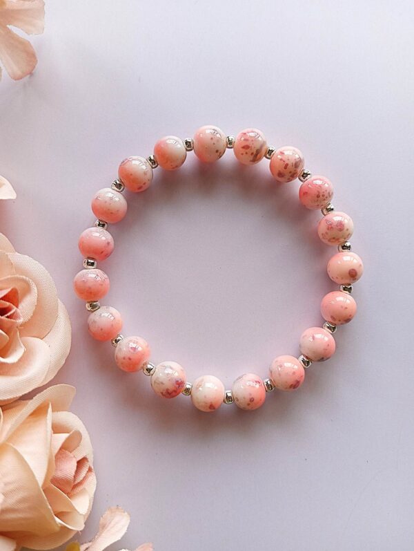 Exquisitely Handmade peachy rose marble jade glass beads stretchable bracelet