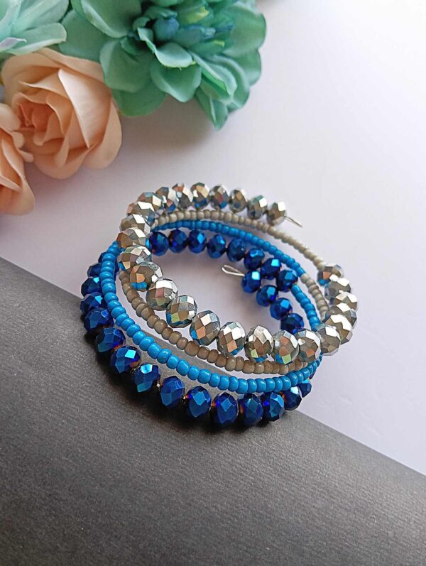 Exquisitely Handmade blue and silver beaded memory wire wrap bracelet