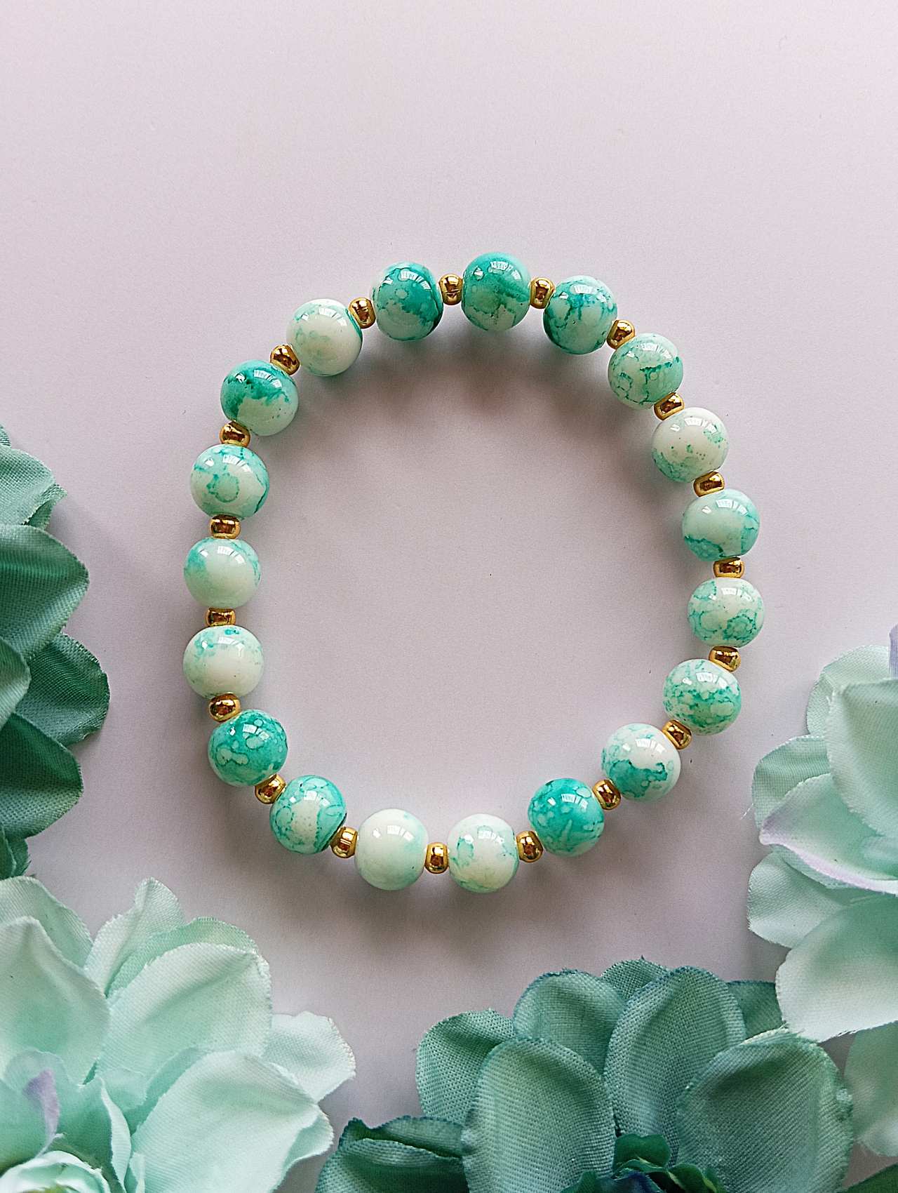 Exquisitely Handmade Turquoise acrylic marble beads stretchable bracelet